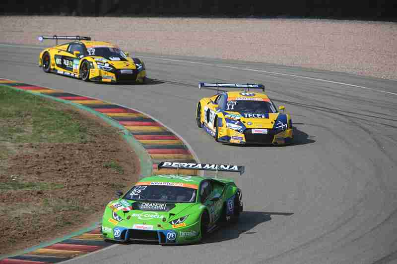 Mikkel Jensen und Timo Scheider (beide BMW Team Schnitzer) machten mit ihrem BMW M6 GT3 bereits beim Start eine Position gut und kamen schließlich als Vierte vor den Mercedes-AMG-Fahrern Indy Dontje und Maximilian Buhk (beide Mann-Filter Team HTP) ins Ziel. Auf den folgenden Plätzen folgte ein Audi-Trio von BWT Mücke Motorsport. Jeffrey Schmidt und Stefan Mücke setzten sich hier als Sechste gegen Mike David Ortmann und Markus Winkelhock sowie Ricardo Feller und Christopher Haase durch.