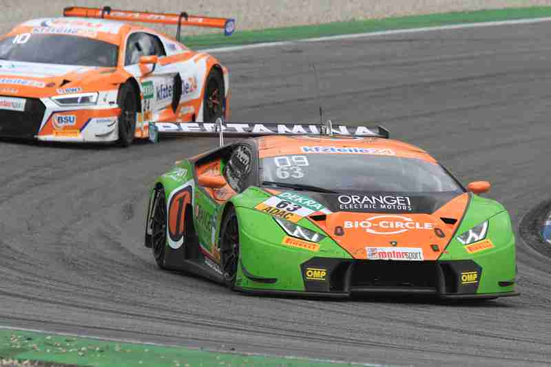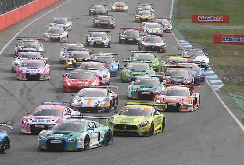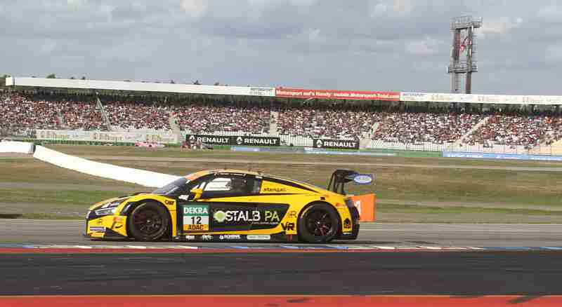 Der vorletzte Lauf in der Saison 2018 wurde bei strahlend blauem Himmel und Sonnenschein unter die Räder genommen. Der fliegende Start funktionierte nach der Einführungsrunde und ging zu Gunsten der Pole-Setter aus. Wenig später waren sich die zweite gelbe Mamba mit Indy Dontje/Maximilian Buhk, Mike David Ortmann/Markus Winkelhock und Christopher Mies/Jake Dennis nicht ganz einig, mit der Folge das alle drei kollidierten und stark havariert dem Feld hinterher eilten. Die Rennleitung musste dann das Rennen neutralisieren, weil Nicolaj Rogivue/Frederic Vervisch im Kies gestrandet waren. Filip Salaquarda/Frank Stippler hatten sich zwischenzeitlich gedreht und auch Ezequiel Perez Companc/Carlo van Dam standen neben der Strecke. Christopher Mies/Jake Dennis und Mike David Ortmann/Markus Winkelhock waren in der Zwischenzeit in der Box angekommen.