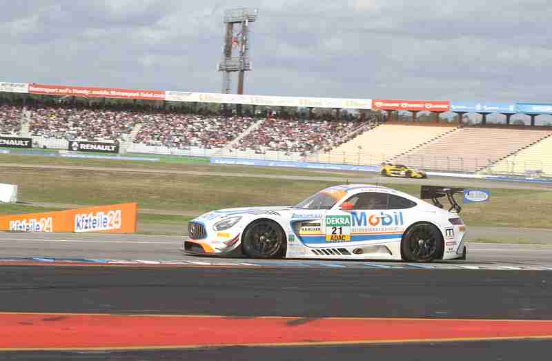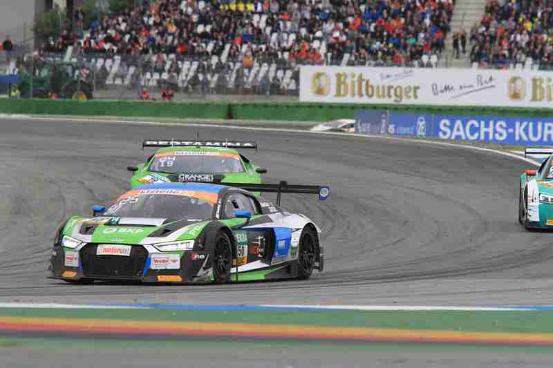 Neun Minuten vor Schluss konnte Maximilian Götz/Markus Pommer vor der Mercedes-Tribüne an Christopher Haase/Ricardo Feller vorbeigehen. Die Audi-Piloten versuchten zwar noch einen Gegenkonter, mussten aber die gelbe Mamba ziehen lassen. Rundenlang dauerte dann der Kampf zwischen der Maximilian Götz/Markus Pommer und den Gebrüder van der Linde an. Zu diesen beiden gesellten sich aber auch wieder Christopher Haase/Ricardo Feller. Um den letzten Platz auf dem Treppchen war ein spannender Dreikampf in den letzten fünf Minuten entstanden. An der Spitze war es nun auch sehr eng geworden. Die Radhausinnenaufhängung hatte sich beim Land-Audi gelöst und die Mamba und auch der BWT Audi hatten Glück, dass sie rechtzeitig ausweichen konnten als diese fliegen ging.