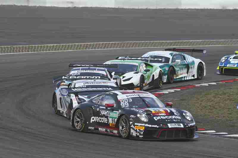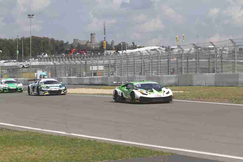 Ebenfalls auf das Podium kamen als Dritte- zum ersten Mal in diesem Jahr – die Lamborghini-Werksfahrer Franck Perera und Albert Costa Balboa. Maro Engel/Luca Stolz verteidigten mit ihrem Mercedes-AMG GT3 Evo als Siebte ihre Tabellenführung, verpassten aber erstmals in dieser Saison das Podium. Maximilian Götz hatten sich gegenüber dem ersten Lauf verbessert und nahmen jetzt Platz vierzehn ein. Sie kämpften aber weiterhin mit stumpfen Waffen.