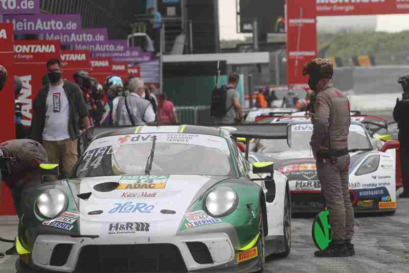 Wenig später kamen auch schon acht Fahrzeuge zur gleichen Zeit in die Box gefahren. Beim nächsten Umlauf folgten sechs weitere Fahrerwechsel. Die Reihenfolge geriet nun erst einmal durcheinander. Die gelbe Mamba wollte unbedingt an den Porsche-Piloten vor ihnen vorbei. Dabei wurden sie vom Mercedes touchiert und nach außen gedrängt. Dies konnten sofort Kim-Luis Schramm/Dennis Marschall ausnutzen und gleich an beiden vorbeiziehen. Die Führenden vollzogen bei noch 23 Minuten verbleibender Zeit ihren Pflichtboxenstopp. David Jahn/Jesse Krohn und Maximilian Paul/Hugo Sasse führten unterdessen das Feld an. Doch diese beiden Fahrzeuge mussten noch zum Stopp hereinkommen.