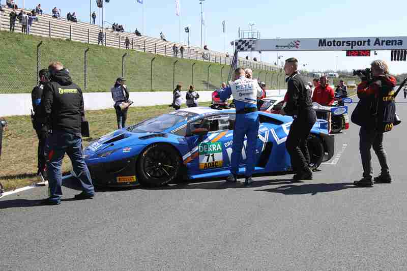 Am Samstagmorgen um 9.20 Uhr ging es dann für die Fahrer hinaus auf die Strecke um in den zwanzig Minuten zur Verfügung stehenden Zeit ihre Startaufstellung auszufahren. Immer wieder wechselten die Positionen. Kurz vor Schluss musste diese Sitzung mit der roten Flagge unterbrochen werden, da Frank Bird/Elias Seppänen ihr Fahrzeug nicht mehr unter Kontrolle hatten und in die Streckenbegrenzung eingeschlagen waren. Als der Re-Start erfolgte standen noch 2:57 Minuten auf der Uhr. Salman Owega/Hugo Sasse standen genauso unter Beobachtung wie Ben Green/Niklas Krütten. Die Ersten wegen Blockierens von Simon Reicher/Norbert Siedler und die anderen wegen Überfahrens der weißen Linie am Boxenausgang.