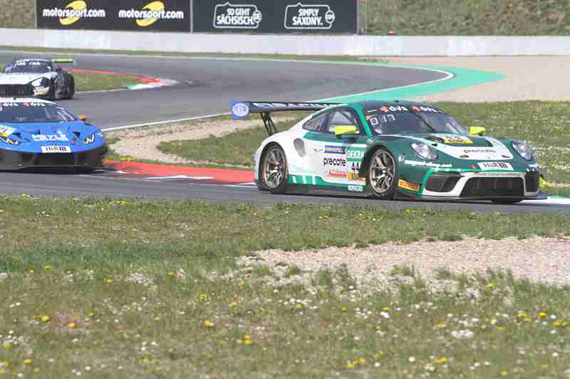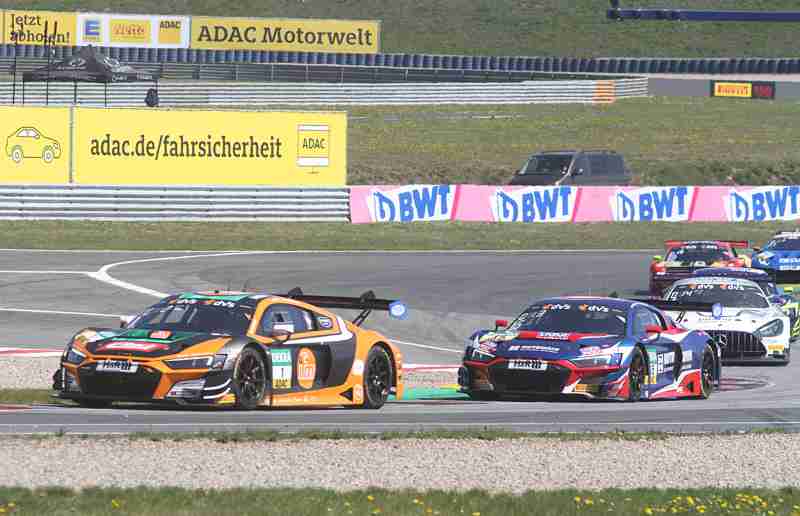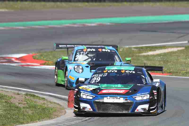 Albert Costa Balboa/Jack Aitken hatten sich zu dieser Zeit bereits auf Rang 16 nach vorne geschoben. Der amtierende Meister Christopher Mies war mit seinem Partner Tim Zimmermann auf Platz dreizehn unterwegs. An der Spitze mussten Arthur Rougier/Franck Perera absolute Kampflinie fahren, denn ihnen im Nacken saßen Ricardo Feller, der Meister von 2021 mit dessen Partner Jusuf Owega. Niklas Krütten/Ben Green hatten alle Hände voll zu tun ihren elften Platz zu verteidigen, denn sie hatte gleich sechs Fahrzeuge im Schlepptau. Die Führenden hatten unterdessen in der ersten Kurve einen Fehler gemacht, sie schossen durch den Dreck, kamen zwar wieder auf die Strecke zurück doch die Piloten von Land Motorsport hatten sich bereits durch die Lücke gedrängt und führten das Feld an. Sie konnten sich auch direkt absetzen.