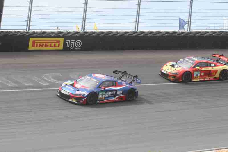 Der zweite Start an diesem Wochenende fand am Sonntagmittag bei trockener Strecke und Sonnenschein statt. Als die Fahrer in der Startaufstellung standen schob man das Fahrzeug von Ricardo Feller/Jusuf Owega wieder zurück in die Box. Nach der Einführungsrunde funktionierte der fliegende Start ohne Probleme und Jack Aitken/Albert Costa Balboa konnten ihre Führungsposition behaupten und führten die Meute durch die erste Kurve. Mit viel Disziplin ging es durch die ersten fünf Kurven hindurch. Überall kam es schon zu einigen Positionsverschiebungen. Eine Position gut gemacht hatten bereits Maximilian Götz/Ezequiel Perez Companc. Nach der ersten Runde führten immer noch die Pole-Setter, gefolgt von Mattia Drudi/Thierry Vermeulen. Sie waren von Rang vier gestartet.