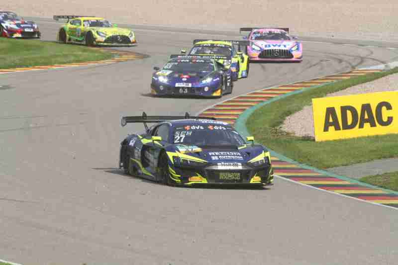 Da bei Tim Zimmermann/Christopher Mies die Hinterreifen von rechts nach links getauscht worden waren, hatten sie eine zehn Sekunden längere Mindeststandzeit in der Box. Danach waren sie nur noch auf Rang zwölf unterwegs. In der Schlussphase hatten Raffaele Marciello/Daniel Juncadella noch einmal Boden gut gemacht und sich auf den letzten Platz des Siegerpodestes gefahren. Der Vorsprung von Kim-Luis Schramm/Dennis Marschall schrumpfte immer weiter, denn Marvin Dienst/Jan Marschalkowski waren bis auf 0,824 Sekunden heran gefahren. In den letzten drei Minuten hatten Marvin Dienst/Jan Marschalkowski sich neben Kim-Luis Schramm/Dennis Marschall gezwängt und gingen dann vorbei. Damit hatten sie jetzt die Führung übernommen. Da die Rutronik-Piloten versucht hatten die Türe zu zuschmeißen, wurde auch etwas der Lack ausgetauscht.