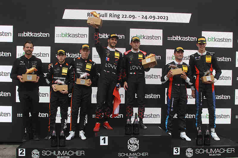 Maxime Oasten (FK Performance Motorsport): „Ein unglaubliches Rennen, ich kann es noch gar nicht glauben. Ich fand sehr schnell in meinen Rhythmus und setzte eine Attacke nach der anderen. Gleichzeitig habe ich mich darauf konzentriert, die Reifen nicht zu sehr zu beanspruchen. Bruno musste sich in den letzten Kurven nochmal richtig verteidigen, das kostete mich einige Nerven.“
