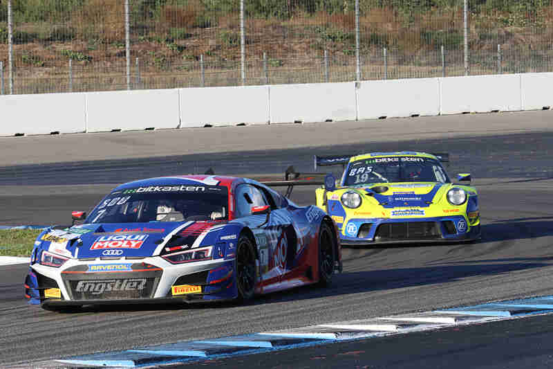 Am Samstagnachmittag nahm man den vorletzten Lauf in dieser Saison bei schönstem Herbstwetter unter die Räder. Der fliegende Start nach der Einführungsrunde konnten die Pole-Setter für sich verbuchen und ihre Position behaupten und führten das Feld in die erste Kurve. Dann ging es weit gefächert auf die Reise. Aus Kurve drei drehten sich Michael Joos/Nico Bastian heraus und mussten nun dem Feld hinterher eilen. Nach der ersten Runde führten weiterhin Benjamin Hites/Marco Mapelli vor Alain Valente/Ralf Aron und Jannes Fittje/Nico Menzel. Petru Umbrarescu/Maximilian Götz hatten Rang neun eingenommen. Die ersten drei hatten sich bereits etwas vom übrigen Feld abgesetzt. Einen harten Kampf lieferten sich Eduardo Coseteng/Ben Green und Petru Umbrarescu/Maximilian Götz.