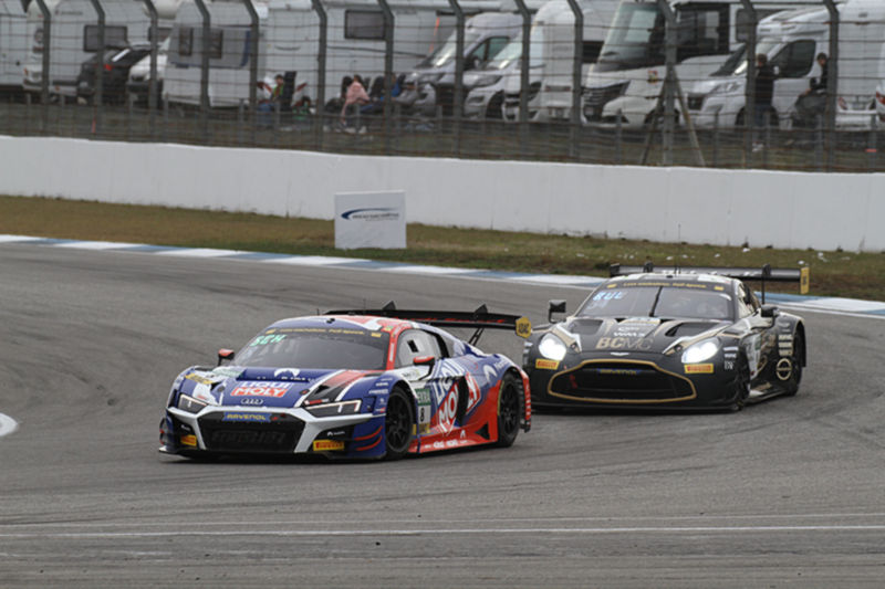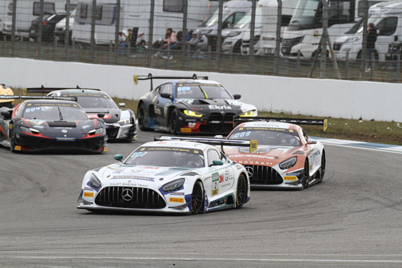 Um den letzten Platz auf dem Treppchen ging es zwischen den Ferrari Piloten und den Holzem-Brüder mächtig zur Sache. In der letzten Runde konnten dann die Audi-Fahrer vorbei gehen. Doch der Gegenkonter ließ nicht lange auf sich warten und Jean-Luc D`Auria / Alain Valente holten sich ihren dritten Rang wieder zurück. Bei einem Zweikampf mit Tim Zimmermann / Benjamin Hites gerieten Alexander Schwarzer / Alexander Fach auf die nasse Wiese und dann ging es ab. Man schlug dann auf der gegenüberliegenden Seite noch in die Streckenbegrenzung ein. Tom Kalender / Elias Seppänen holten den fünften Saisonsieg vor Maxime Oosten / Leon Köhler und Jean-Luc D`Auria / Alain Valente. Salman Owega / David Schumacher sahen das Ziel auf Rang sieben.