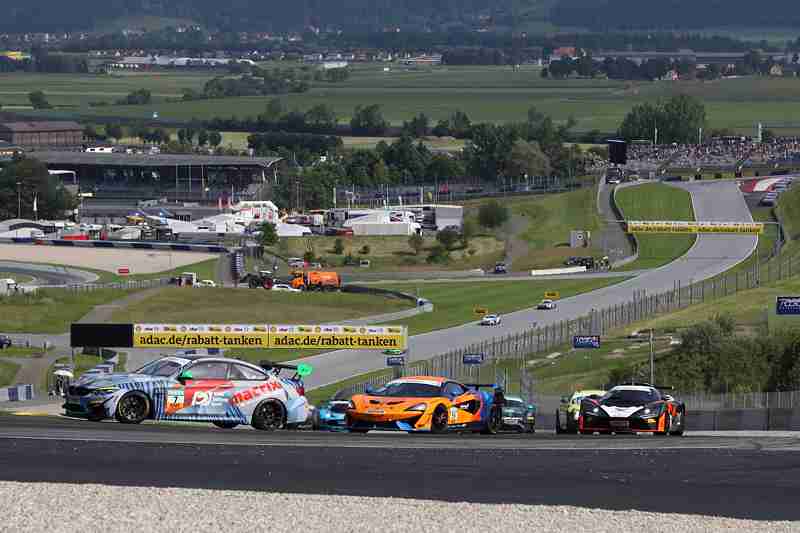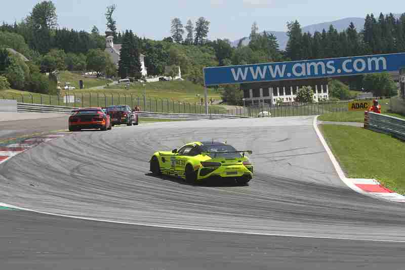 Zu dieser Zeit war für Fred-Martin Dye/Thomas Krebs das Rennen in der Box früher beendet als geplant. Das Fahrzeug war im hinteren linken Bereich beschädigt. Dies kam dadurch zustande, weil beim Start Luca-Sandro Trefz/Morgan Huber an einem anderen Fahrzeug aufgestiegen waren und danach dann den McLaren noch beschädigt haben. Zuvor war die gelbe MAMBA in die Zange genommen worden. Laura Kraihamer/Reinhard Kofler waren auf Platz neun unterwegs. Der beste KTM X-Bow GT4 lag mit den Piloten Mads Siljehaug/Eike Angermayr auf Rang vier. Die Drittplatzierten in der Meisterschaft waren auf Rang elf unterwegs. An der Spitze lagen unterdessen drei BMW`s. Für Florian Thoma/Jèrèmie Lesoudier war das Rennen auch schon in Boxengasse zu Ende. Sie waren diejenigen an der sich die gelbe MAMBA zuerst angelehnt hatte.