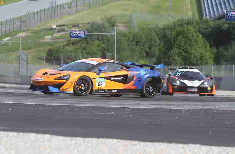 Nach diesem Überholvorgang wurden die BMW-Piloten auch noch von zwei weiteren Fahrzeugen niedergerungen. Damit lagen sie nur noch auf Platz acht. An der Spitze hatten sich Thomas Jäger/Michael Schrey mit über vier Sekunden vom übrigen Feld abgesetzt. Rundenlang dauerte der Kampf der McLaren-Piloten mir den BMW-Fahrern auf Platz zwei an. Doch Georg Braun/Stephan Grotstollen schlugen Michael Benyahia/Charles Fagg jedes Mal die Türe vor der Nase zu .In der Schlussphase waren Thomas Tekaat/Franjo Kovac bis auf Platz zehn zurückgefallen. In den letzten zwei Runden hatten Jusuf Owega/Hamza Owega Reinhard Kofler/Laura Kraihamer und Eike Angermayr/Mads Siljehaug im Nacken sitzen.