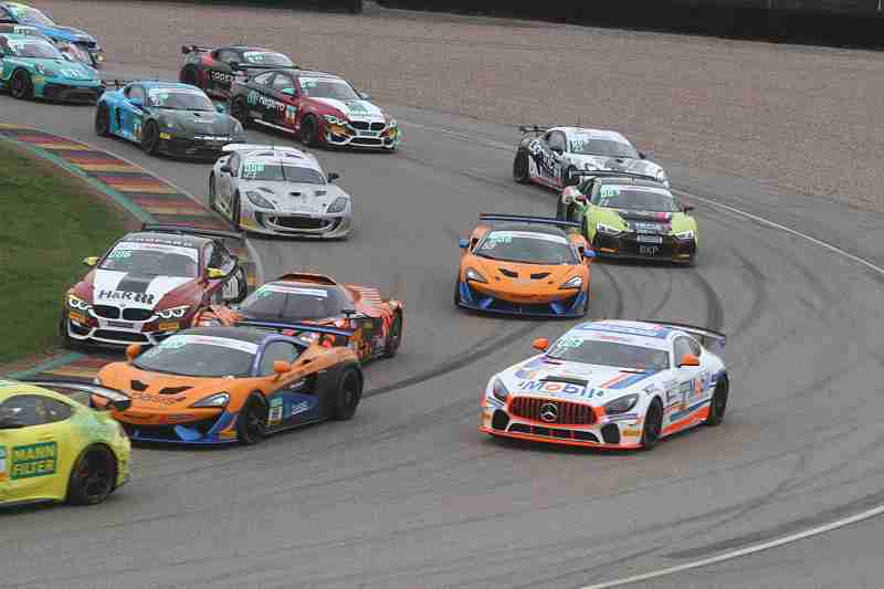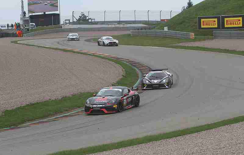 Nach der Einführungsrunde funktionierte der fliegende Start ohne weiteres und die Pole-Setter konnten ihre Position verteidigen. Im hinteren Feld staubte es schon etwas. Hier und da wurde auch schon etwas der Lack ausgetauscht. Bereits in der ersten Runde waren die Tabellenführer langsamer geworden und wurden durchgereicht. Nach der ersten Runde führte weiterhin die gelbe Mamba vor Phil Dörr/Fred Martin-Dye und Jan Marschalkowski/Hendrik Still. Zwischenzeitlich waren Jan Kasperlik/Nicolaj Möller Madsen in die Box gekommen und mussten das Rennen dort schon sehr früh wegen einer gebrochenen Felge beenden. William Tregurtha/Hugo Sasse waren im hinteren rechten Bereich leicht beschädigt unterwegs. Claudia Hürtgen/Sebastian van Gartzen hatten sich die Piloten der Ginetta zu Recht gelegt und waren vorbeigegangen.