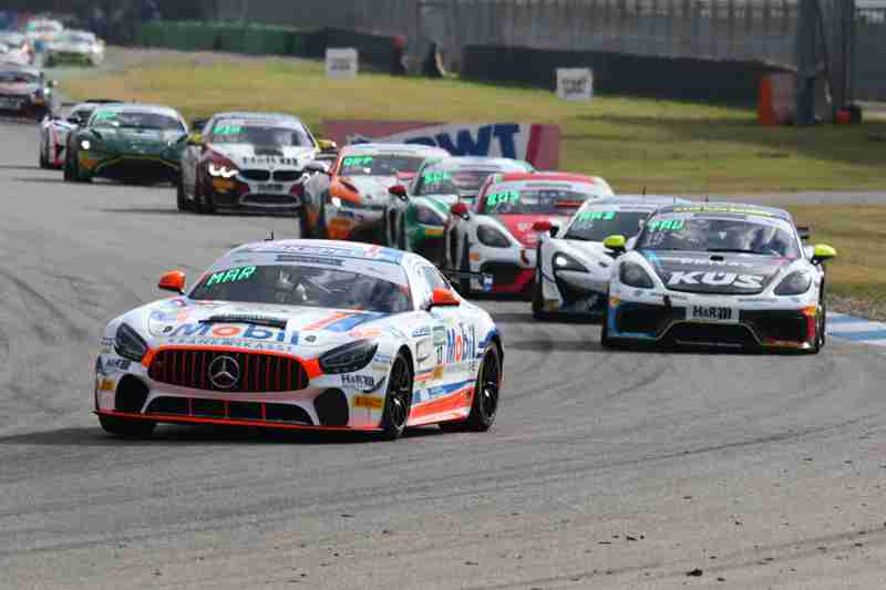 Nach der Einführungsrunde funktionierte der fliegende Start am Samstag bei herrlichstem Herbstwetter nicht ohne Probleme, denn die Ampel blieb weiterhin auf rot. An der Strecke wurde rot geschwenkt. Bei der Startampel gab es ein technisches Problem. In langsamer Fahrt fuhr man mit 80 km/h über die Strecke. Man stellte sich dann auf der Start und Zielgeraden wieder erneut auf. Es dauerte eine Weile, bis das Rennen dann frei gegeben wurde. Man startete dann hinter dem Safety Car. Die Pole-Setter gaben dann das Tempo vor und konnten sich dann gegenüber allen anderen behaupten und führten das Feld in die erste Kurve. Dort kamen alle mit viel Disziplin hindurch. Im gesamten Feld wurde bereits hart um jede Position gekämpft. Bereits in der ersten Runde hatten Oliver Mayer/Lukas Mayer hinten links einen Plattfuß. Damit war das Rennen für sie gelaufen.