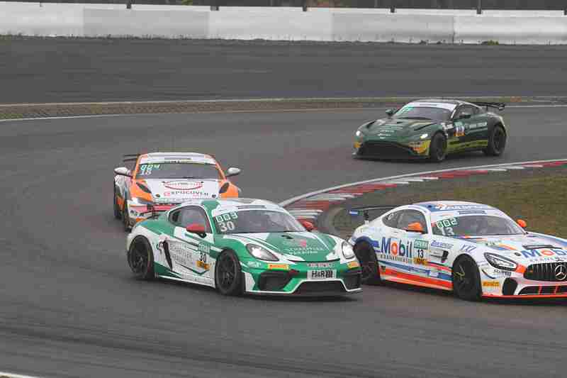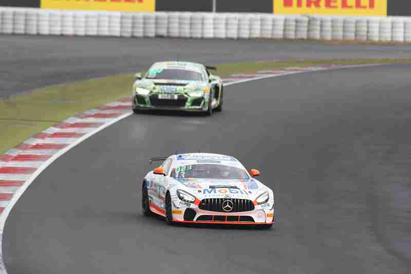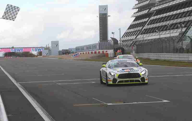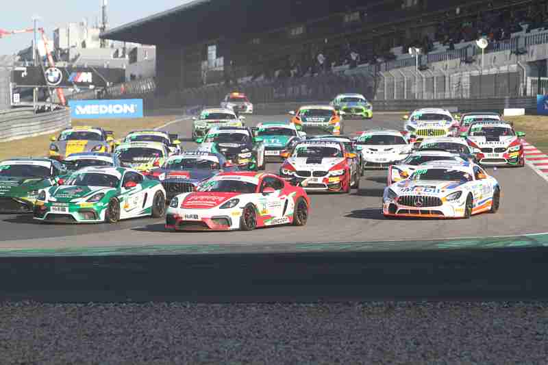 Als es dann am Mittag in die letzte Startaufstellung des Jahres ging, hatten die Pechvögel von gestern Gabriele Piana/Michael Schrey noch eine Strafe wegen Missachtung der Anweisungen der Stewards erhalten. Sie mussten statt von Startplatz neun jetzt von Position vierzehn aus ins Rennen gehen. Der Start nach den zwei Einführungsrunden funktionierte ohne Probleme. Überall wurde hart um jede Position gekämpft. Die von der Pole-Position gestarteten Jan Philipp Springob/John Paul Southern behaupteten nach dem Start zunächst die Führung. Eine überzeugende erste Runde lieferten Michael Schrey/Gabriele Piana ab. Von Startplatz 14 fuhren sie bis auf die sechste Position nach vorne. Dann wurde eine Safety-Car-Phase ausgerufen, um den Mercedes-AMG GT4 von Robin Falkenbach/Marc de Fulgencio zu bergen.