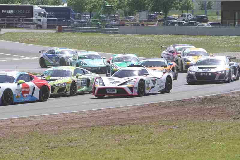 Nach der Einführungsrunde funktionierte der fliegende Start ohne weiteres und die Pole-Setter konnten ihre Platzierung behaupten und alle kamen gut durch die erste Kurve hindurch. Im gesamten Feld wurde hart um jede Positionen gekämpft. Thèo Nouet/Jan Marschalkowski versuchten sich unterdessen abzusetzen. Doch Nicolai Möller Madsen/Dennis Fetzer konnten die Pace mitgehen. Hinter diesen beiden riss das Feld dann ein wenig ab. Gabriela Jilkovà/Robert Haub auf Rang drei hatten eine riesige Armada von Fahrzeugen hinter sich. Nach kurzer Zeit musste das Safety Car herauskommen, weil Christian Kosch/Tom Kieffer auf der Start und Zielgeraden neben der Strecke das Fahrzeug abgestellt hatten.
