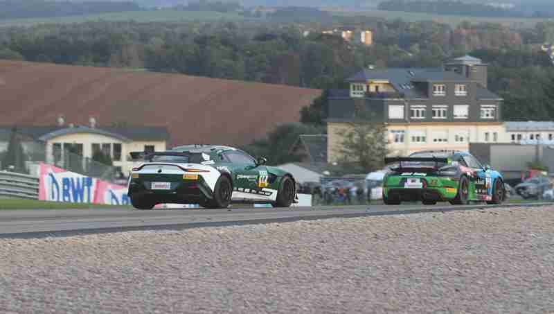 Davon unbeeindruckt bauten Mike David Ortmann/Hugo Sasse ihren Vorsprung an der Spitze immer weiter aus. Hinter den Zweitplatzierten machten sich derweil sein jüngerer Bruder Ben Dörr und Romain Leroux immer größer im Rückspiegel breit. Es kam zum Geschwisterduell, welches Ben Dörr/Romain Leroux mit einem sehenswerten Manöver rund zehn Minuten vor Ende für sich entschieden. Zum Rennende ließen es die Führenden Mike David Ortmann/Hugo Sasse etwas ruhiger angehen und fuhren schließlich mit 2,1 Sekunden Vorsprung zum Laufsieg, der gleichzeitig auch den Erfolg in der Junior-Wertung für Hugo Sasse bedeutete. Nico Hantke/Simon Connor Primm beendeten das Rennen auf Platz vier und machten so den Aston Martin-Vierfachtriumph auf dem Sachsenring perfekt.