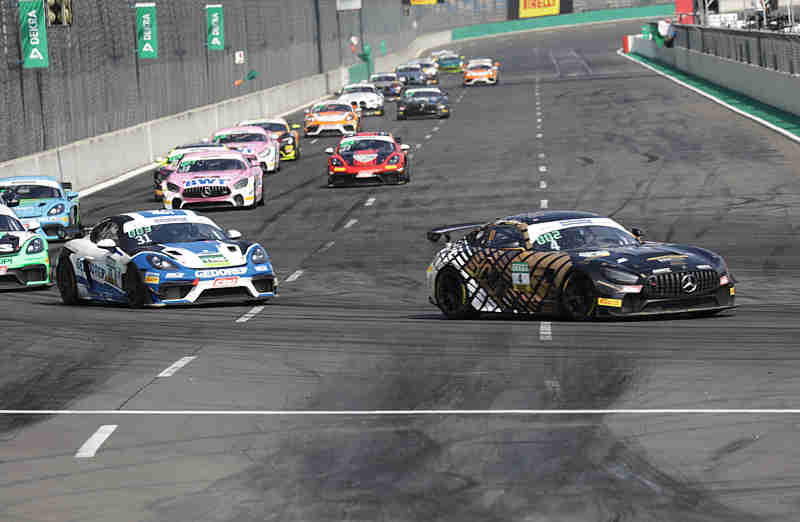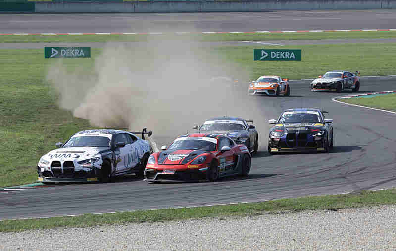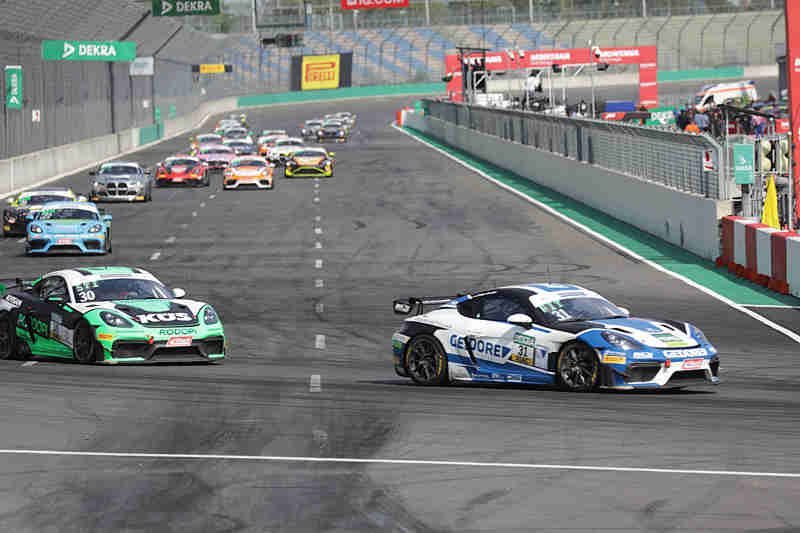 Jannes Fittje/David Jahn hatten nichts zu lachen denn Gabriele Piana/Marat Khayrov setzten ihnen arg zu. Hier ging es um den letzten Platz auf dem Siegerpodest. Michal Makes/Maxime Oosten hatten etwas an der Mauer geschrappt. In diesem Moment hatten Denis Bulatov/Marc de Fulgencio keine Geduld. Sie schossen innen herein und danach flogen die Pole-Setter ab ins Kiesbett. Im nach hin mussten die Porsche-Piloten dann in die Box kommen und gaben dort das Rennen früher auf als geplant. Der Vorfall wurde von der Rennleitung untersucht. Die neuen Führenden hatten sich mit 1,698 Sekunden vom Feld abgesetzt. Auf Platz zwei hatten sich jetzt Gabriele Piana/Marat Khayrov gefahren, nachdem man zuvor Jannes Fittje/David Jahn niedergerungen hatten.