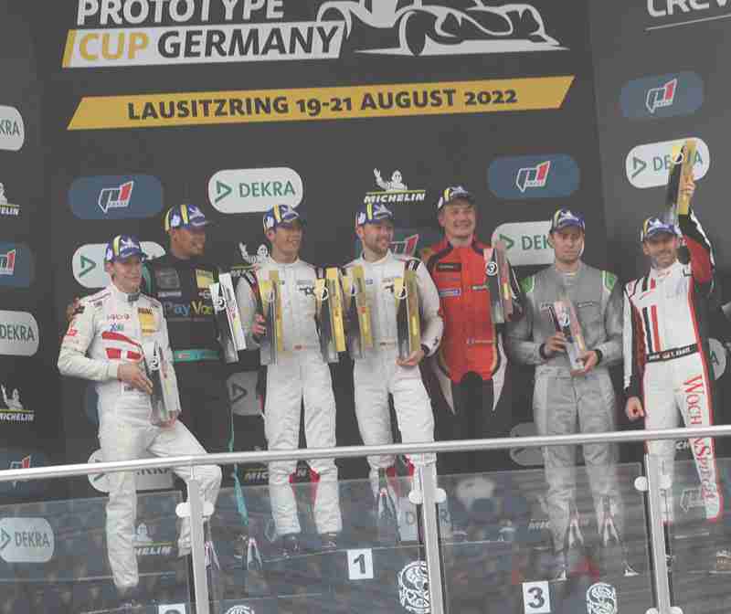 Der zweite Rennabschnitt war dann geprägt von Marvin Dienst. Zunächst überholte er Villagomez und übernahm somit die Führung. Mit weiterhin schnellen Rundenzeiten fuhr er daraufhin einen Vorsprung von über 33 Sekunden heraus und überquerte als Erster die Ziellinie. „Ich fuhr heute zum ersten Mal mit einem LMP3 im Regen“, so Dienst. „Da ich zuvor aber bereits das Rennen im ADAC GT Masters bei nassen Streckenbedingungen absolviert hatte, wusste ich ungefähr, an welchen Stellen ich besonders Vorsicht walten lassen musste. Das hat mir sicherlich ein wenig geholfen. Im Gegensatz zu einem freien Training konnte ich das Limit im Rennen aber nicht austesten. Doch nach und nach habe ich meinen Rhythmus gefunden und konnte immer schneller fahren.“ Neben dem Gesamtsieg freuten sich Besler/Dienst auch über den Erfolg in der Junior-Wertung.