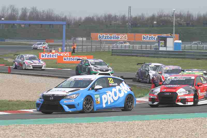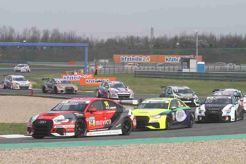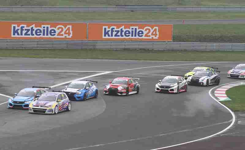 Bevor die Fahrerinnen und Fahrer am Samstag ihren ersten Lauf unter die Räder nahmen wurde das Rennen als wet race erklärt. Nach der Einführungsrunde funktionierte der Start ohne Probleme. In der ersten Kurve berührten sich Mike Halder und Florian Thoma, mit der Folge, dass der Schweizer im Kiesbett landete. An der Spitze ging es hart zur Sache. Der Pole-Setter war kurz neben der Piste. Platz zwei und drei nahmen Harald Prozcyk und Niels Langeveld ein. Da Florian Thoma geborgen werden musste schickte man nun das Safety Car heraus. Der Vorfall wurde nun von den Kommissaren untersucht.