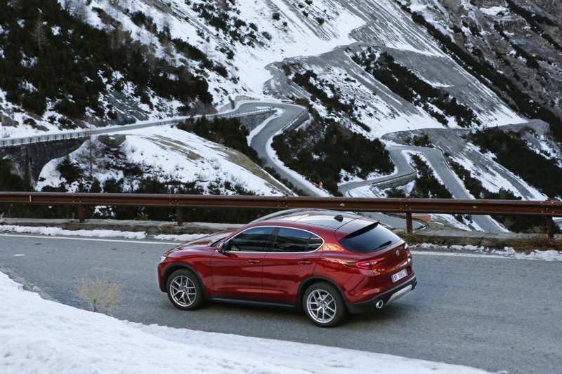Der Modellname Stelvio ist übrigens eine Hommage an die höchste asphaltierte Passstraße in den italienischen Alpen, die zweithöchste in Europa - das Stilfser Joch. Die „Strada Statale 38 dello Stelvio" windet sich mit 75 Kehren und stellenweise mehr als sieben Prozent Steigung bis hinauf zur Passhöhe auf 2.758 Meter. Diese einzigartige Straße bildete die Inspiration für den Fahrspaß und die Leistungsfähigkeit, die der neue Alfa Romeo Stelvio bietet.