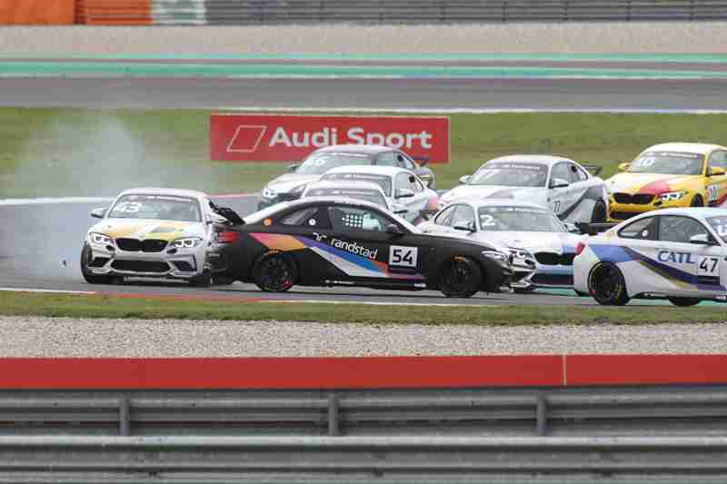 Nach der Einführungsrunde funktionierte der Start ohne Probleme und der Pole-Setter Leonard Hoogenboom, der zum allersten Mal in diesem Fahrzeug sitz und direkt auf die Pole-Position gefahren war, konnte seine Position nicht verteidigen, denn der Tabellenführer schoss direkt an ihm vorbei und führte das Feld an. In der fünften Kurve waren sich Fabian Kreim und Maxime Oosten nicht ganz einig, mit der Folge das beide kollidierten und havariert auf der Strecke liegen blieben. Sofort musste das Safety Car herauskommen. Bei Fabian Kreim war die Radaufhängung gebrochen. Nach der ersten Runde führte Louis Henkefend vor Leonard Hoogenboom und Colin Caresani. Maxime Oosten konnte wieder Fahrt aufnehmen und kam dann in die Box gefahren und musste dort das Rennen früher aufgeben als geplant.