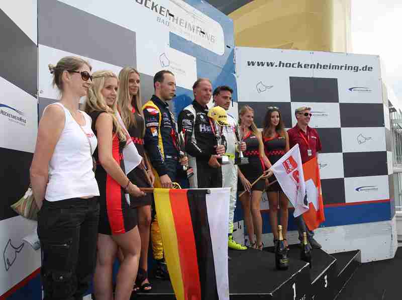 Auch der zweitplatzierte Simon Reicher (Yaco Racing) und Dennis Busch (Twin Busch Motorsport powered by équipe vitesse) berichteten über die im Rennverlauf aufkommende Problematik des Übersteuerns, bei dem das Fahrzeugheck in der Kurve nach außen drängt. „Aufgrund der hohen Außentemperaturen von 30 Grad ist das heute bei jedem Auto mit Heckantrieb so. Wir haben hinten links mehr als 100 Grad Celsius Reifentemperatur, da baut jeder Reifen ab“, erklärte Busch, der den Pokal für den dritten Gesamtrang mit nach Bensheim nehmen durfte.