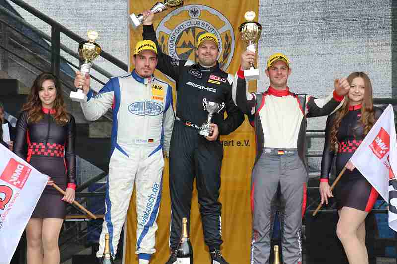 Der 3. Saisonlauf des DMV GTC startete am Samstag um 11:55 Uhr bei Nieselregen und entwickelte sich von Beginn an zu einer immer heftigeren Rutschpartie, die am Ende Uwe Alzen für sich und den Audi R8 LMS GT3, den er mit und für Dietmar Haggenmüller einsetzt, gewinnen konnte. Kenneth Heyer im Sternenkrieger und Dennis Busch im Audi R8 LMS GT3 ergänzten Alzen auf dem Siegerpodium. „Es waren unheimlich schwierige Verhältnisse heute auf Slicks, stellenweise gab es Regen, aber es war ein gutes Rennen und hat Spaß gemacht“, sagte Uwe Alzen, Gesamtsieger und Sieger der Klasse 1, im Anschluss.