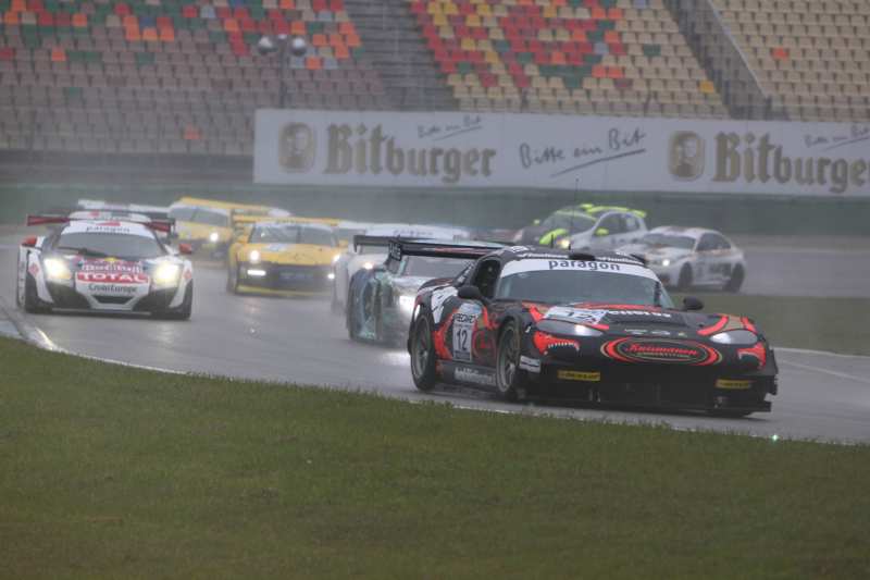 Bereits am Donnerstag war man bei (noch) strahlendem Sonnenschein für Tests am Hockenheimring angereist. Nachdem anfängliche Kleinigkeiten aussortiert waren, verliefen die letzten beiden Sessions wie ein Schweizer Uhrwerk. Doch der Wetterbericht verhieß nichts Gutes (zumindest keine trockenen Bedingungen für die beiden Rennen) für die kommenden Tage. Die beiden Qualifyings bestritt Friedrich dann bewusst mit gebrauchten Reifen um doch für etwaige trockene Bedingungen noch nagelneue Gummis für die Rennen zu haben. Und es kam dann doch so, wie vom Wetterbericht prognostiziert – Regen satt. Einziger Vorteil, bei diesen Bedingungen fällt der Leistungsunterschied der einzelnen Klassen und somit auch Friedrichs leistungsmäßig unterlegener Porsche GT3 Cup nicht so groß ins Gewicht, was er dann auch eindrucksvoll mit den Plätzen 6 und 5 in der Gesamtwertung unter Beweis stellen konnte.