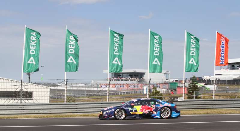 Ernst wurde es dann für die Fahrer am Sonntagmittag, denn nun mussten sie ihre Startaufstellung für das Rennen am Nachmittag ausfahren. Bei noch vierzehn Minuten zu fahrender Zeit hatte sich Gary Paffet mit einer Zeit von 1:23,403 Minuten an die Spitze gefahren, gefolgt von Paul di Resta und Maximilian Götz. Zu dieser Zeit hatten aber noch nicht alle eine gezeitete Runde gefahren. Die Positionen wechselten des öfteren. Als noch sieben Minuten auf der Uhr standen, hatte sich Lucas Auer auf Platz eins gefahren. Er hatte für alle anderen eine Zeit von 1.23,064 Minuten in den Asphalt gebrannt. Platz zwei und drei nahmen Timo Glock und Jamie Green ein. Zu dieser Zeit waren die Piloten in die Box gekommen und warteten ab.