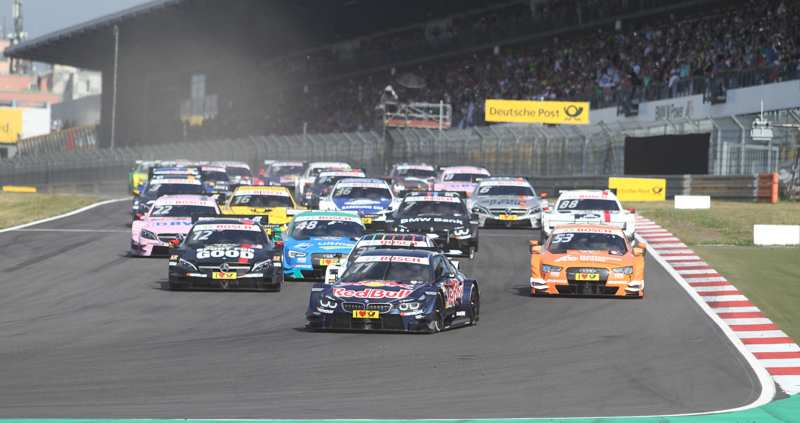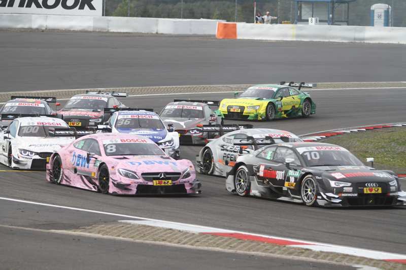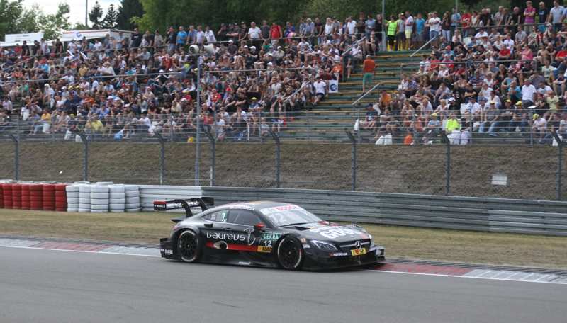 Bruno Spengler auf Platz sechs hatte es mit Nico Müller zu tun bekommen. Im nach hinein konnte der BMW-Pilot den Audi-Piloten nicht mehr halten und musste ihn ziehen lassen. In der letzten Runde war Mattias Ekström an Marco Wittmann auf Rang drei dran. Der Tabellenführer musste absolute Kampflinie fahren. Nach 43 Runden wurde Edoardo Mortara mit einem Vorsprung von 3,7 Sekunden als Sieger abgewunken, gefolgt von Lucas Auer und Marco Wittmann. Dieser kam hauchdünn mit nur 0,3 Sekunden Vorsprung vor dem Audi-Piloten ins Ziel. Robert Wickens und Jamie Green beendeten das Rennen auf den Rängen vierzehn und 17. Maximilian Götz sah als Dreiundzwanzigster die Ziellinie.