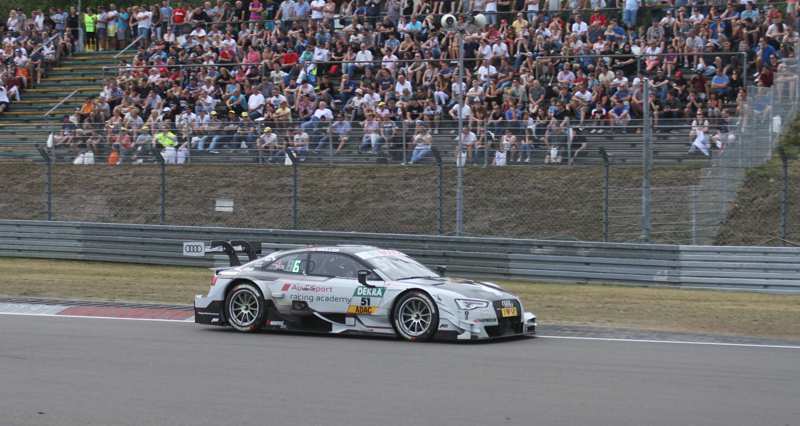 Auf der Start und Zielgeraden setzte sich der Italiener neben den Österreicher, zog nach innen und war auf der besseren Bahn und übernahm die Führung. Er konnte sich auch direkt von seinem Verfolger absetzen und hatte in den letzten neun Minuten einen Vorsprung von 1,7 Sekunden. Der Tabellenführer, Robert Wickens und Jamie Green, die die Tabelle anführen lagen auf den Plätzen drei, elf und 16. Maximilian Götz war auf dem letzten Platz unterwegs. Zwischenzeitlich hatte Mattias Ekström Bruno Spengler hinten angeschubst und war an ihm vorbeigegangen. Hier ging es um Platz vier. Timo Scheider und Robert Wickens tauschten auch mehr als den Lack aus. Der Canadier wurde von dem Audi-Piloten nach außen gedrückt. Danach hatte Timo Scheider Rang zwölf eingenommen. Runde um Runde setzte sich der Führende immer weiter vom Feld ab. Die ersten vier hatten nach vorne und hinten genug Luft.