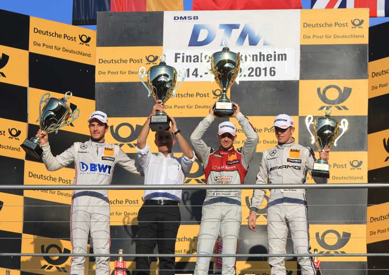Drei Titel sind am Ende einer DTM-Saison zu vergeben. Vor dem Finale auf dem Hockenheimring Baden-Württemberg vom 14. bis 16. Oktober ist noch keine Entscheidung gefallen: Marco Wittmann hat in der Fahrerwertung die Nase vorn, Audi geht als Spitzenreiter in der Hersteller- und Teamwertung (mit dem Audi Sport Team Abt Sportsline) in die letzten beiden Rennen des Jahres 2016. Audi und BMW werden sich deshalb auf dem Hockenheimring einen dramatischen Schlagabtausch liefern, liegen sie in allen drei Wertungen doch extrem dicht beieinander. Die Chancen von Mercedes-AMG sind nach dem Titel von Pascal Wehrlein im Vorjahr stark reduziert. Obwohl die Stuttgarter in dieser Saison vermutlich ohne Pokal nach Hause reisen, werden die Sternenfahrer nochmal alles in die Waagschale werfen, um das Jahr mit positiven Ergebnissen abzuschließen.