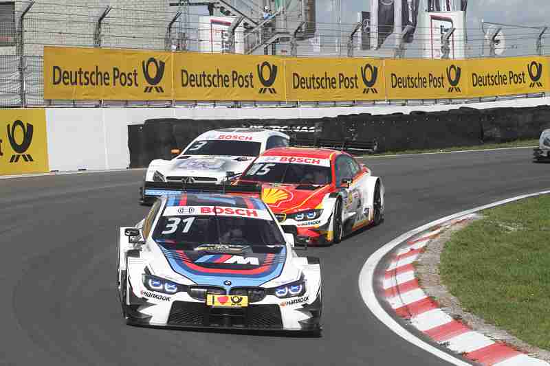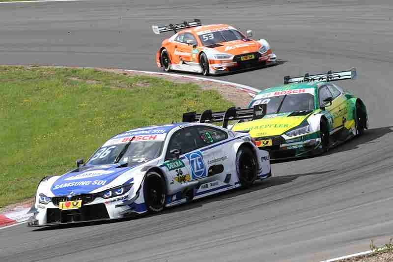 An der Spitze hatte sich eine Gruppe von fünf Fahrzeugen gebildet. Auf den ersten drei Plätzen befanden sich BMW-Piloten. Rene Rast auf Platz neun versuchte sich Paul di Rest zurecht zu legen. Durch einen kleinen Fehler musste er zunächst zurückstecken. Der Tabellenführer musste dann ein drittes Mal die Box aufsuchen, um dann endgültig dort das Rennen aufzugeben. Timo Glock wurde nach 37 Runden als Sieger abgewunken vor Marco Wittmann und Maxime Martin. Bester Audi-Pilot wurde Mike Rockenfeller auf Platz vier. Paul di Resta war auf Rang sieben der schnellste Mercedes-Fahrer. Rene Rast und Lucas Auer überquerten die Ziellinie auf den Rängen neun und 15.