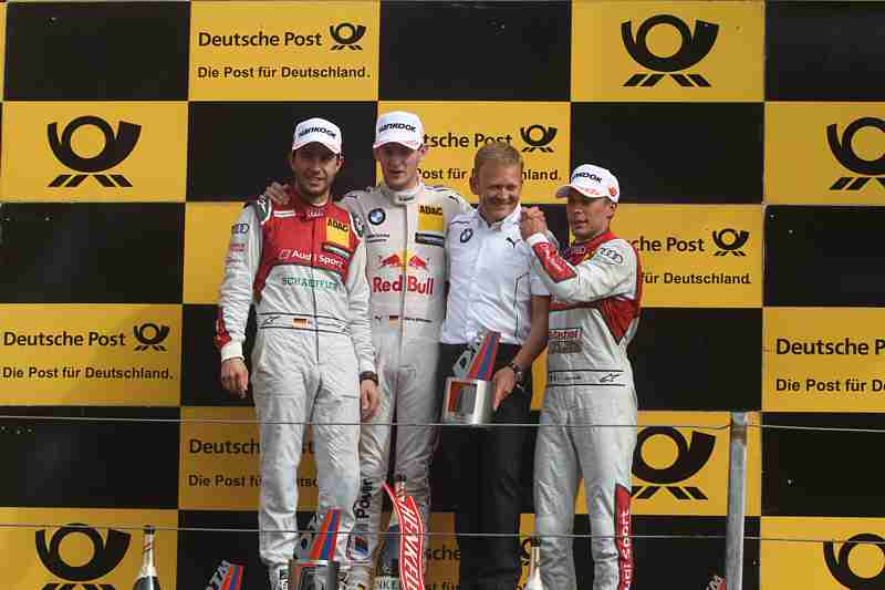 Im nach hinein wurde Mike Rockenfeller als Sieger erklärt, weil Marco Wittmann im Anschluss an das Rennen disqualifiziert wurde. Bei der technischen Nachuntersuchung seines Fahrzeugs war nicht mehr die vorgeschriebene Restmenge an Benzin im Tank. Da nach der Disqualifikation die Audi-Markenkollegen Loïc Duval und Mattias Ekström aufrückten, gingen alle Podestplätze an die Ingolstädter. Für Duval ist es der erste Podestplatz in seinem zwölften DTM-Rennen. Alle nachfolgenden Piloten rückten damit einen Platz auf.