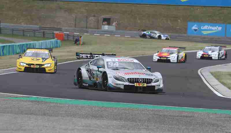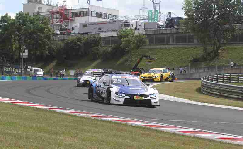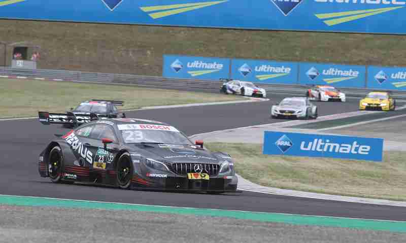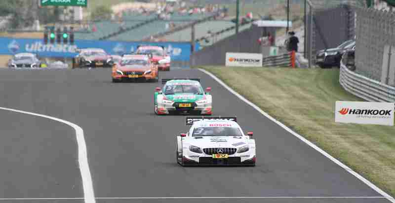 Auch das zweite Rennen am Hungaroring fand bei herrlichstem Sommerwetter statt. Lucas Auer konnte nach der Einführungsrunde seine Pole-Position behaupten und führte die Meute in die erste Kurve, wo es mit viel Disziplin hindurch ging. Wenig später drehte sich Timo Glock und büßte dadurch Plätze ein. Am Ende des Feldes konnte er sich dann wieder einreihen. Im gesamten Feld wurde hart gefightet. Nach der ersten Runde führte weiterhin der Pole-Setter vor Pascal Wehrlein und Paul di Resta. Nach dieser Runde kamen Mike Rockenfeller, Joel Eriksson und Timo Glock zum Pflichtstopp herein. Rene Rast hatte einen Platz eingebüßt, denn Daniel Juncadella war an ihm vorbei gezogen. Augusto Farfus kam bei der nächsten Umrundung in die Box zum Reifenwechsel.