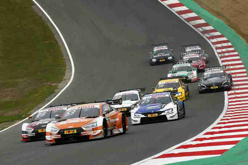Nach der Einführungsrunde funktionierte der Start ohne Probleme. Sehr gut kam hier Lucas Auer weg, denn er konnte bereits nach wenigen Metern, nachdem er den Pole-Setter überrumpelt hatte, vorbeiziehen und die Führung übernehmen. Auch Rene Rast versuchte außen an Daniel Juncadella vorbeizuziehen. Mit viel Disziplin ging es durch die ersten Kurven. Überall im Feld waren harte aber faire Fights im Gange. Mehrere Fahrzeuge kamen schon sehr früh zum Boxenstopp herein. Rene Rast, Timo Glock, Robin Frijns, Loic Duval, Paul di Resta, sowie Bruno Spengler zogen bereits in der Anfangsphase vor, ihre Reifen zu wechseln. Nachdem Loic Duval seine Reifen gewechselt hatte, wurde er von Robin Frijns unter Druck gesetzt, mit der Folge, dass er mit kalten Reifen in Kurve 2 in der Bergaufpassage von der Strecke flog, durchs Kiesbett segelte und in die Streckenbegrenzung einschlug.