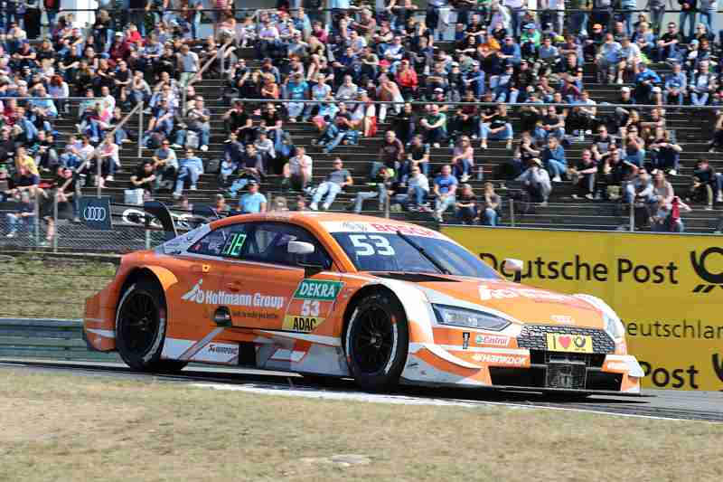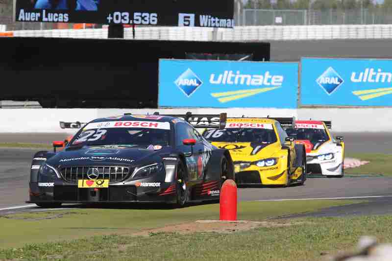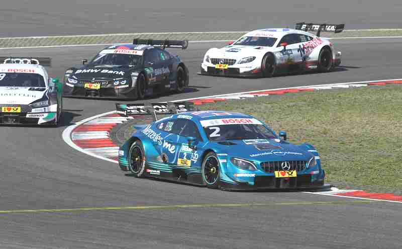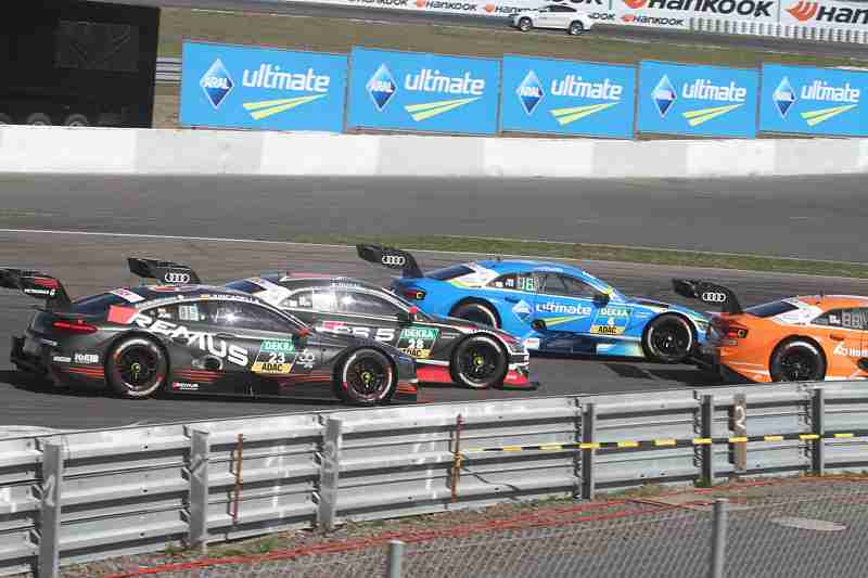 Ihren 15. Lauf in dieser Saison nahmen die Piloten am Samstagmittag bei optimalen Witterungsbedingungen unter die Räder. Nach der Einführungsrunde funktionierte der Start ohne Probleme und der Pole-Setter konnte die Meute in Schach halten und führte sie in die erste Kurve. Im hinteren Feld waren sich zwei nicht ganz einig, mit der Folge dass beide von der Strecke abkamen und dem Feld hinterher eilen konnten. Überall wurden bereits harte Fights ausgetragen. Nach der ersten Runde führte weiterhin Rene Rast vor Gary Paffett und Bruno Spengler. Edoardo Mortara und Robin Frijns waren diejenigen die sich nicht einig waren und sich rauskatapultiert hatten. Rene Rast hatte sich nach zwei Runden bereits mit einem Vorsprung von 1,0 Sekunden abgesetzt.