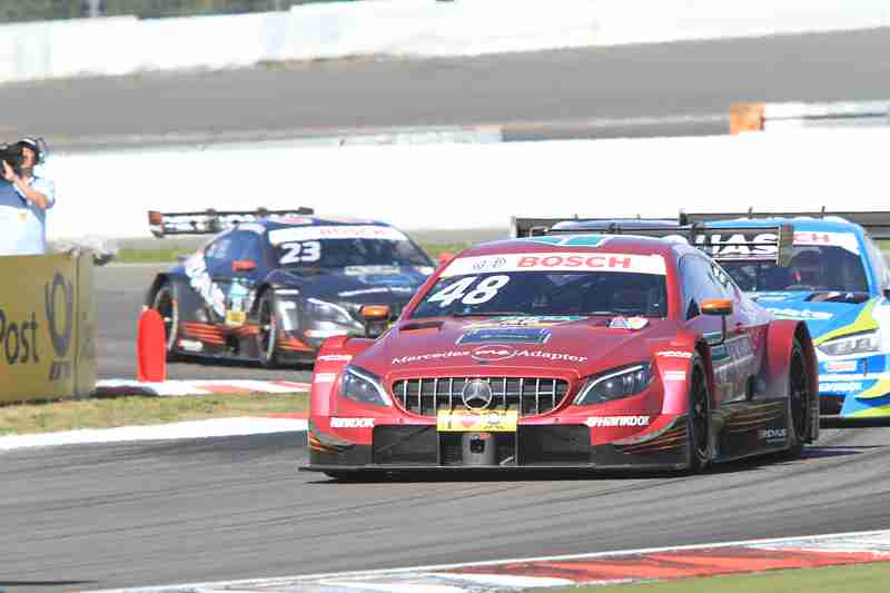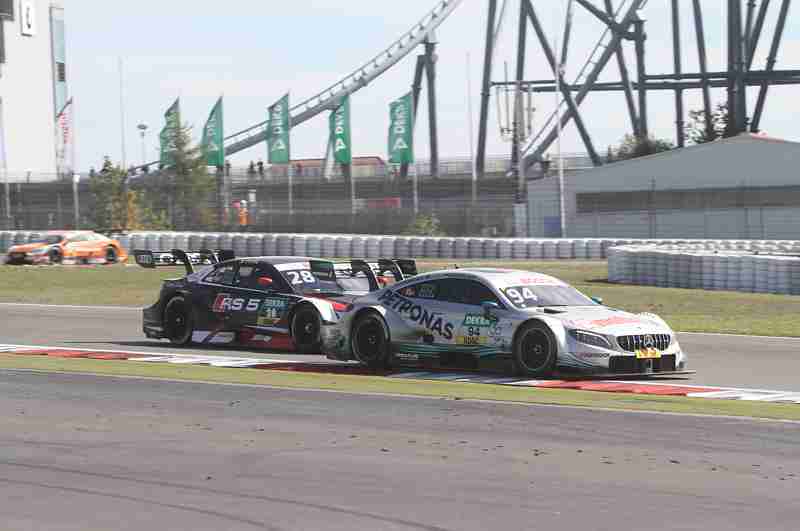Pascal Wehrlein auf Rang acht musste sich hart gegen Augusto Farfus zur Wehr setzen. Dieser hatte noch Mike Rockenfeller und Nico Müller im Schlepptau. Auf der Start und Zielgeraden setzte sich Pascal Wehrlein neben Lucas Auer und machte am Ende kurzen Prozess und zog innen vorbei auf Platz sieben. In der vorletzten Runde waren die Vorsprünge an der Spitze geschrumpft. Bruno Spengler war an Rene Rast und Timo Glock an Gray Paffett dran. Zu dieser Zeit hatte Mike Rockenfeller Pascal Wehrlein niedergerungen und damit Platz sechs eingenommen. Gary Paffett hatte durch einen Patzer von Timo Glock in der NGK Schikane wieder etwas Luft bekommen.