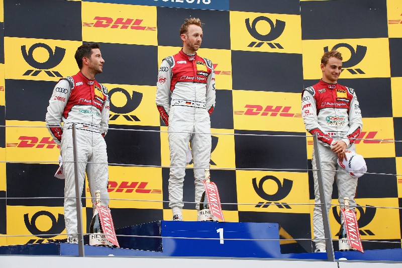 Die Freude bei Rennsieger Rene Rast war nicht so ausgelassen wie noch am Nürburgring. Er profitierte bei seinem siebten DTM-Sieg von einer Strafe gegen Daniel Juncadella und dem Teamplay seiner Markenkollegen, die ihn in der letzten Runden kampflos vorbeigelassen hatten. „René ist unsere einzige Chance im Titelkampf, das letzte Eisen im Feuer“, erklärte Rockenfeller. „Wenn wir als Teamkollegen helfen können, dann machen wir das. Die Saison ist im Endspurt, da geht es nur so.“ Wie im vergangenen Jahr in der Steiermark standen erneut drei Audi-Piloten auf dem Podium. „Das ist ein tolles Ergebnis, mit dem Anfang des Jahres niemand gerechnet hätte“, so Müller.