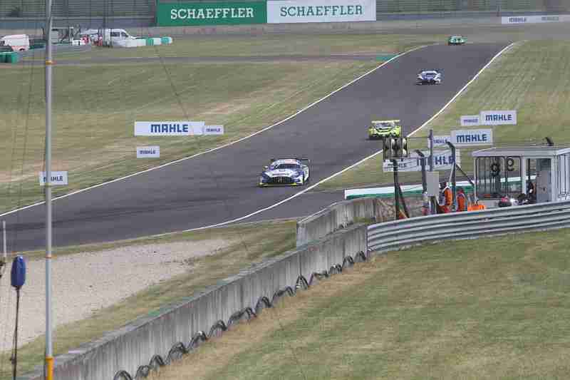 Maximilian Götz hatte sich auf Rang 17 gefahren. Im gesamten Feld ging es hoch her. Überall wurde hart gefightet. Im Verlauf der dritten Runde setzte Mirko Bortolotti Rene Rast auf Rang drei unter Druck. Thomas Preining war bei einem Zweikampf von der Strecke abgekommen und schoss dann durchs Kiesbett. Danach war er nur noch auf Platz 27 unterwegs. Er hatte danach sowie Mikael Greiner vorzeitig die Box aufgesucht. Nach sieben gefahrenen Runden kamen bereits die ersten zu ihrem Pflichtboxenstopp herein. Es waren: Maro Engel, Ricardo Feller, Lucas Auer, Luca Stolz, Clemens Schmid, Marius Zug und Nicki Thiim. Beim nächsten Umlauf kamen wieder sechs Fahrer zum Reifenwechsel. Die Reihenfolge geriet nun erst einmal durcheinander. In der neunten Runde hatte Nicki Thiim sein Fahrzeug mit technischen Problemen in der Wiese abgestellt.