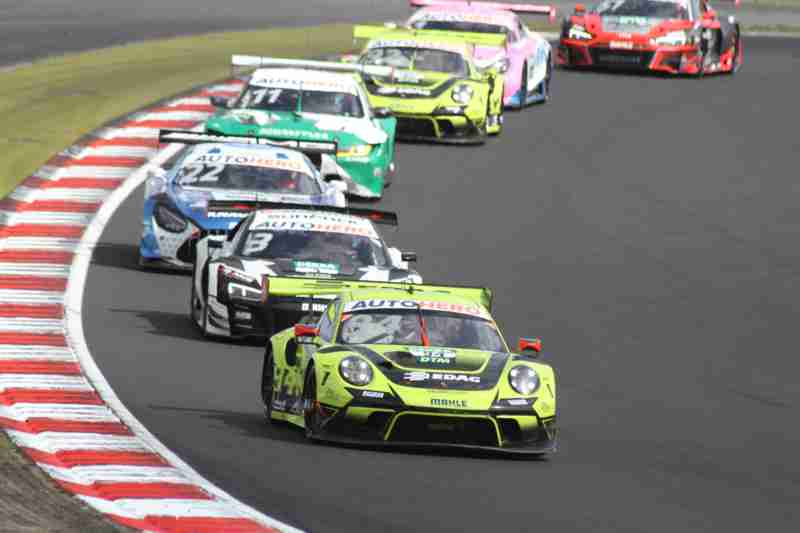 Das erste Zeittraining an diesem Wochenende stand eigentlich am Samstagmorgen um 10.15 Uhr auf dem Zeitplan. Nachdem es in der Nacht und in den frühen Morgenstunden geregnet hatte, war nun auch noch enormer Nebel aufgezogen. Dieser verzog sich zunächst überhaupt nicht. Daraufhin entfiel das Qualifying und es wird daher am Samstagmittag nach dem Meisterstand gestartet. Die Pole-Position hatte damit Mirko Bortolotti inne, gefolgt von Sheldon van der Linde und Rene Rast. Das heutige Geburtstagskind Maro Engel nimmt das Rennen aus der sechsten Startreihe aus auf. Der amtierende Meister Maximilian Götz wird versuchen von Platz 16 aus sich nach vorne zu arbeiten.