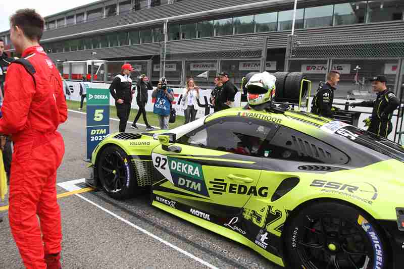 Beim nächsten Umlauf wurde er dann von seinem eigenen Teamkollegen Lucas Auer auf Platz zwei verwiesen. Die Zeiten wurden nun immer schneller, da die Strecke immer mehr abtrocknete. Die Namen an der Spitze änderten sich nun immer wieder. Die Pole-Position hatte sich bei seinem letzten Umlauf Rene Rast mit einer Zeit von 2:23,424 Minuten und acht gefahrenen Runden gesichert. Hinter ihm werden der Tabellenführer Sheldon van der Linde und Nick Cassidy ins Rennen gehen. Maximilian Götz wird das Rennen aus der dritten Startreihe aus aufnehmen. Mirko Bortolotti musste sich mit Startposition 22 zufrieden geben.