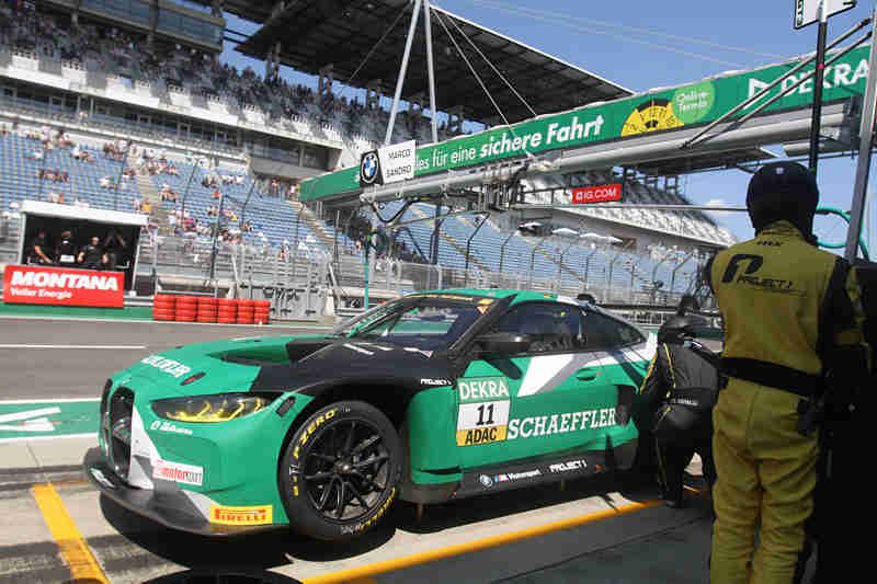 Das erste Ausfahren ihrer Startaufstellung für den Lauf am Samstagmittag stand am Samstagmorgen um 9.05 Uhr auf dem Zeitplan. In diesen zwanzig Minuten wechselten zunächst immer wieder die Positionen Mit nur einem knappen Vorsprung von 0,054 Sekunden holte sich der Brite Jack Aitken (Emil Frey Racing) nach sechs Runden mit einer Zeit von 1:19,937 Minuten die Pole-Positionen. Hinter ihm werden Mirko Bortolotti und Lucas Auer ins Rennen gehen. Thomas Preining und Sheldon van der Linde mussten sich mit der achten bzw. dritten Startreihe zufrieden geben. Maximilian Paul und Sandro Holzem werden das Rennen von den Startpositionen zehn und 26 aus aufnehmen.