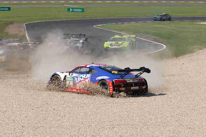 Im Verlauf der dritten Runde konnten Marco Wittmann und Sheldon van der Linde gleichzeitig an Jusuf Owega vorbeigehen. Zu dieser Zeit waren Laurin Heinrich und Patric Niederhauser aneinander geraten, mit der Folge, dass er sich Ende Start und Ziel drehte. Diese Aktion wurde von der Rennleitung untersucht. Laurin Heinrich musste drei Mal durch die Penalty Lap hindurch, weil er eine Kollision hätte vermeiden können. Rene Rast der sein 100. DTM-Rennen absolvierte hatte einen guten Start und war auf Platz dreizehn unterwegs. In der fünften Runde tauschten Marco Wittmann und Maro Engel den Lack aus. Die gelbe Mamba kam dadurch durch den Dreck. Dies schaute sich die Rennleitung in aller Ruhe an. Ricardo Feller setzte unterdessen Mirko Bortolotti unter Druck.