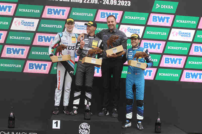 Der Schweizer musste absolute Kamplinie fahren, denn Luca Engstler hinter ihm attackierte ihn rundenlang. Hinter diesen beiden lauerten noch Laurin Heinrich, Andrea Caldarelli und Patric Niederhauser. In den letzten zwei Minuten ging es zwischen Andrea Caldarelli und Patric Niederhauser mächtig zur Sache. Im nach hinein konnte der Lamborghini-Pilot den Audi-Piloten nicht halten und musste ihn ziehen lassen. Danach fielen noch David Schumacher und Tim Heinemann über ihn her und zogen vorbei. Nach 41 Runden wurde Rene Rast vor seinem Teamkollegen Sheldon van der Linde als Sieger abgewunken. Den letzten Platz auf dem Stockel nahm Thomas Preining ein. Ricardo Feller holte sich mit Rang 15 noch einen Punkt für die Meisterschaft. Mirko Bortolotti auf Platz 21 ging leer aus. Damit fuhr nun Thomas Preining als neuer Tabellenführer nach Hause.