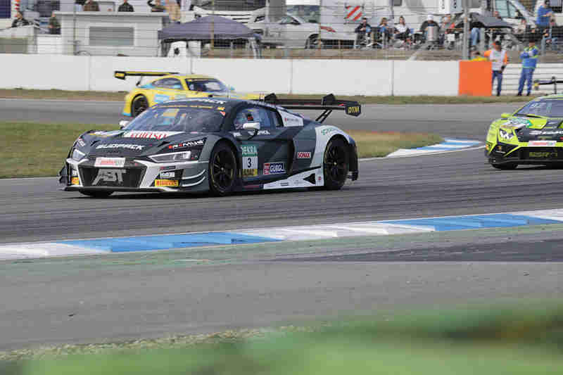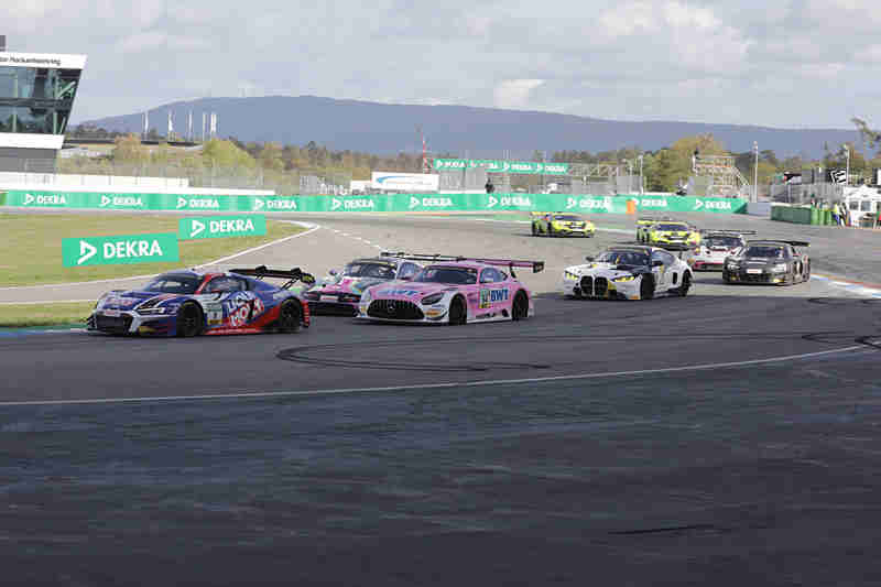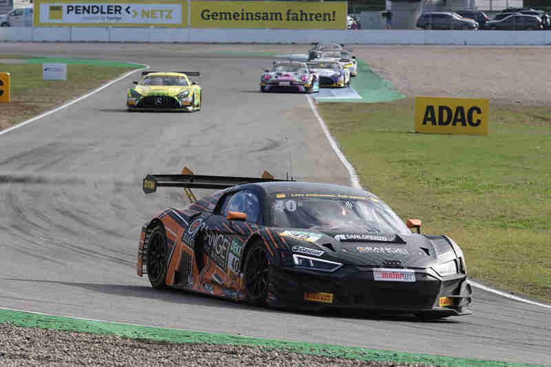Ihren vorletzten Lauf nahmen die Protagonisten am Samstagmittag bei herrlichstem Herbstwetter in Angriff. Thomas Preining hatte dann den fliegenden Start für sich verbuchen können. Durch die erste Kurve kamen sie gut hindurch. Wenig später drehte sich Jusuf Owega und musste nun dem Feld hinterher eilen. Dennis Olsen hatte sich bereits auf Platz zwei gefahren. Der Pole-Setter führte weiterhin nach der ersten Runde vor Dennis Olsen und Christian Engelhart. Ricardo Feller und Mirko Bortolotti hatten Boden gut gemacht. Sie lagen auf den Rängen fünf und sieben. Im Verlauf der zweiten Runde wurde hier und dort auch schon mal etwas der Lack ausgetauscht. Salman Owega hatte von Sheldon van der Linde einen Treffer bekommen und war dadurch nur noch auf Rang 28 unterwegs. Die ersten drei Piloten versuchten sich vom übrigen Feld abzusetzen.