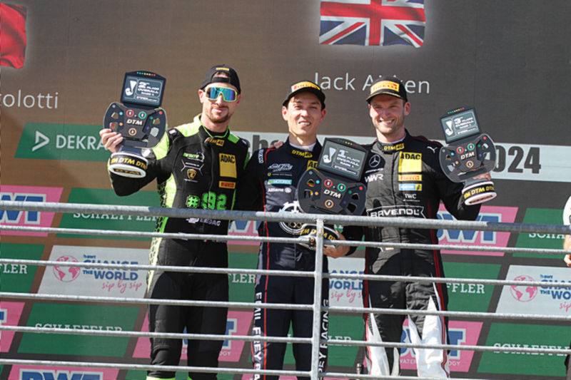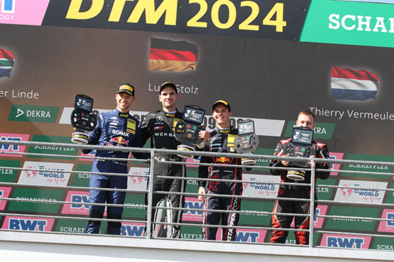 Luca Stolz (Mercedes-AMG Team HRT): „Endlich stand ich mal wieder auf dem DTM-Podium und dann auch noch als Gewinner. Der Sieg ist durch die Strafe für Thierry Vermeulen etwas glücklich, er war heute der Schnellste. Trotzdem fühlt es sich super an und ich hoffe,dass wir diesen Schwung mit in die Schlussphase der Saison nehmen können.“