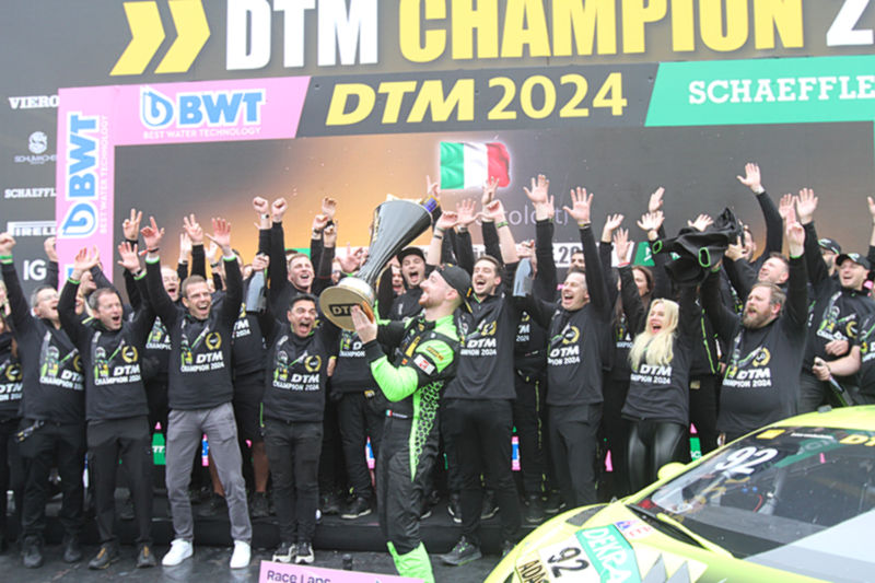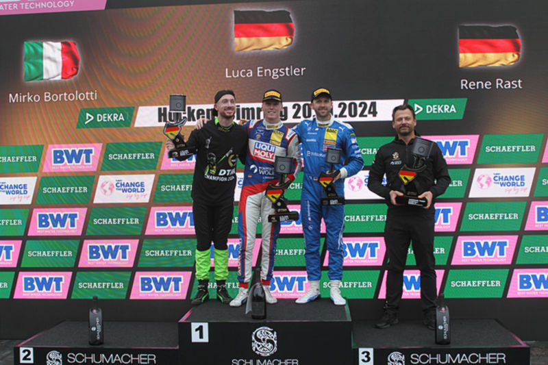 Luca Engstler (Lamborghini Team Liqui Moly by GRT): „Mein erstes DTM-Rennen habe ich beim Auftakt in Oschersleben gewonnen. Beim Finale den zweiten Sieg zu holen, fühlt sich großartig an. Ich habe keine Worte und kann das alles noch gar nicht fassen. Nach unserem frühen Boxenstopp bin ich wie um mein Leben gefahren und konnte Mirko Bortolotti überholen. Ich hatte das Gefühl, dass Mirko mit Blick auf die Meisterschaft im Kampf um den Sieg nicht alles riskiert hat. Wenn einer den Titel verdient hat, dann er.“