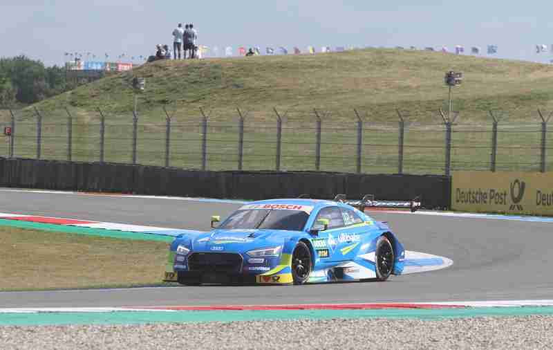 Das erste freie Training nahmen die 18 Piloten am Freitagmittag bei herrlichstem Sommerwetter unter die Räder. In der 45 minütigen Session wechselten die Positionen immer wieder. Am Schluss hatte sich dann Loic Duval (Audi Sport Team Phoenix) mit vierzehn absolvierten Runden und einer Zeit von 1:26,700 Minuten in Szene gesetzt. Hinter ihm lagen zwei weitere Audi Piloten und zwar Nico Müller (Audi Sport Abt Sportsline) und Robin Frijns (ebenfalls Audi Sport Abt Sportsline). Der Tabellenführer und Philipp Eng mussten sich zunächst mit den Rängen neun und 15 zufrieden geben. Timo Glock (BMW Team RMR) auf Rang vier war der beste BMW-Fahrer im Feld. Der schnellste Aston Martin Pilot Daniel Juncadella (R-Motorsport) lag auf Platz sieben.