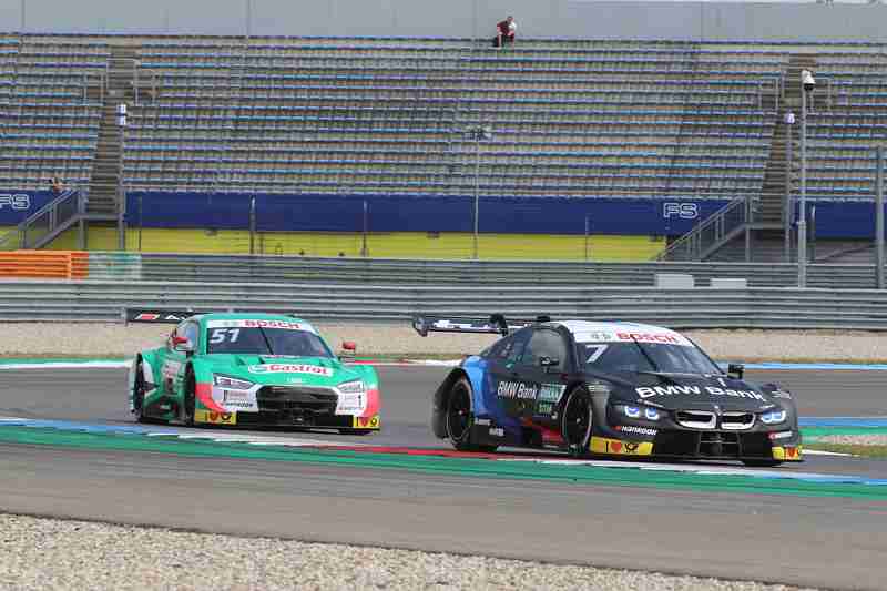 Das erste Qualifying für das Rennen am Samstagmittag mussten die Fahrer am Samstagmorgen von 10.15 Uhr bis 10.35 Uhr hinter sich bringen. Zunächst wechselten die Positionen des öfteren Bei noch zwölf Minuten zu fahrender Zeit hatte sich Marco Wittmann mit einer Zeit von 1:25,434 Minuten an die Spitze gefahren. Hinter ihm lagen Rene Rast und Loic Duval. Nico Müller und Philipp Eng nahmen zu dieser Zeit die Ränge sechs und acht ein. Bei Halbzeit dieser Sitzung musste diese mit rot unterbrochen werden, weil Jake Dennis auf der Strecke ausrollte und erst einmal geborgen werden musste. Zuvor waren Jonathan Aberdein und Philipp Eng auf Abwegen unterwegs. Das Qualifying konnte dann um 10.30 Uhr wieder aufgenommen werden. Als Erster machte sich Sheldon van der Linde auf den Weg.