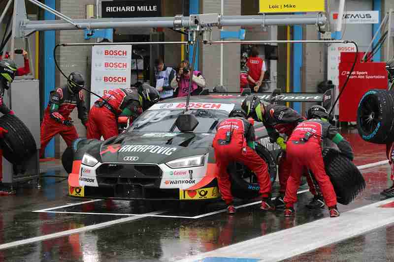 Beim nächsten Umlauf vollzog auch der Pole-Setter seinen Stopp. Es führte jetzt Nico Müller das Feld an. Philipp Eng, Timo Glock und Pietro Fittipaldi mussten noch in die Box kommen. Zwischenzeitlich nieselte es nur noch. In den letzten 18 Minuten war Rene Rast wieder an Marco Wittmann dran: Immer wieder versuchte der Audi-Pilot den BMW-Fahrer niederzuringen. Dieser musste absolute Kampflinie fahren. Nico Müller führte das Feld mit 9,5 Sekunden vor Philipp Eng und Timo Glock an. Diese drei mussten aber noch in die Box kommen. Als noch elf Minuten auf der Uhr standen vollzog Philipp Eng seinen Boxenstopp. Zur gleichen Zeit war Robin Frijns nach einem Kampf mit Pietro Fittipaldi von der Strecke gesegelt und schlug mit dem Heck in die Streckenbegrenzung. Danach kam er in die Box und beendete dort das Rennen früher als geplant.